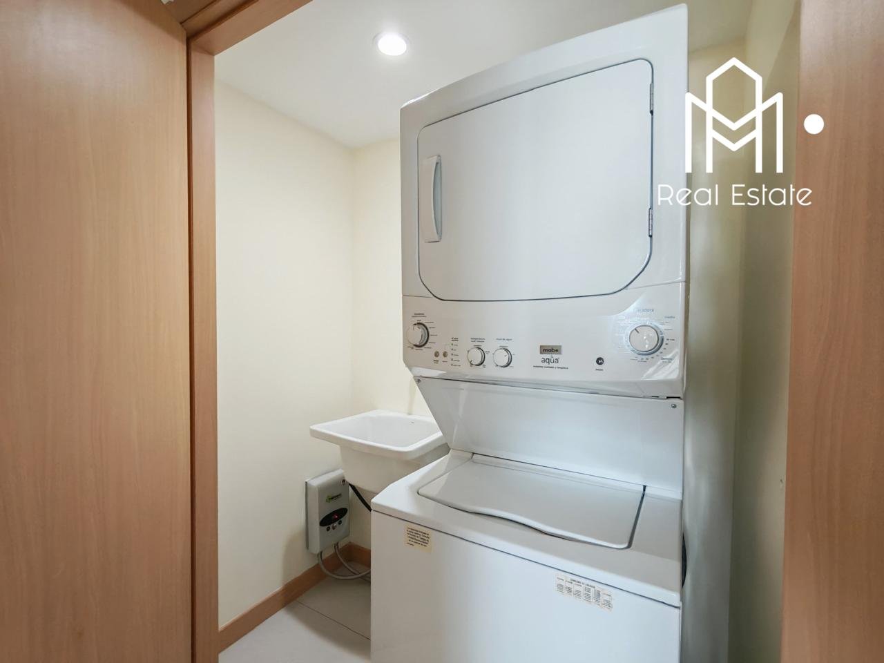 * Zona de lavado: Cuarto de pilas con lavadora-secadora en torre. 🧺