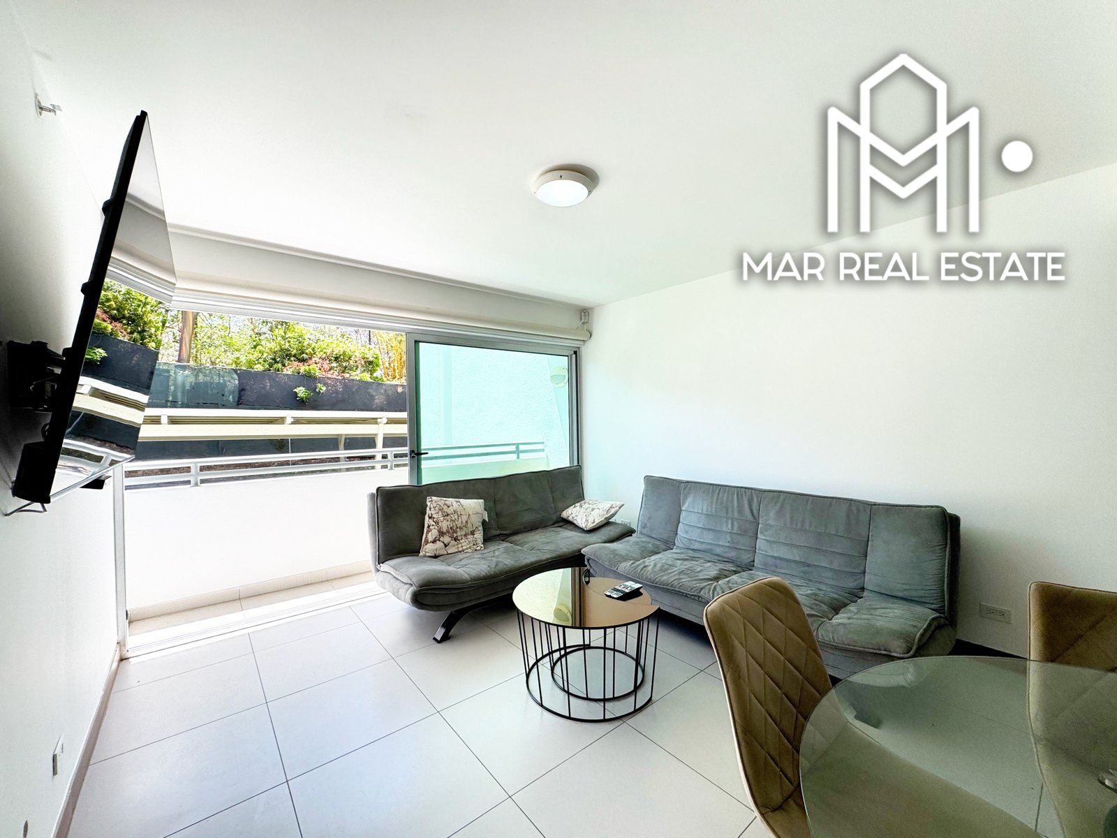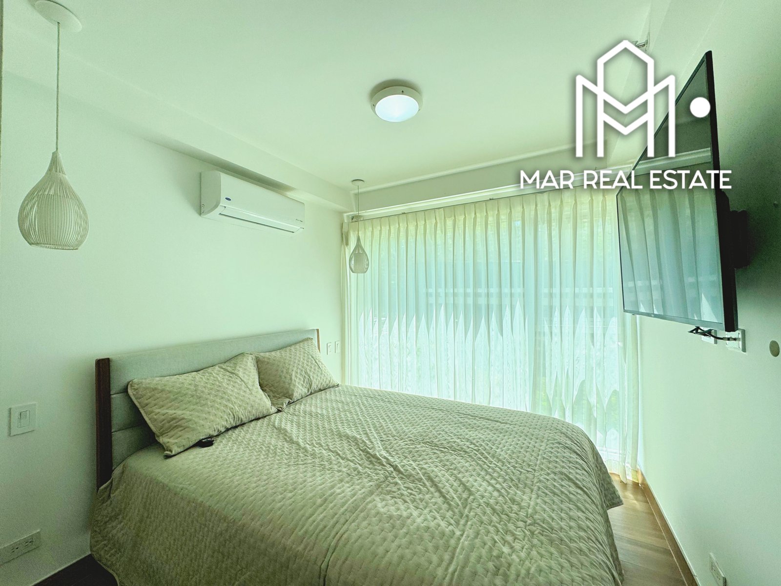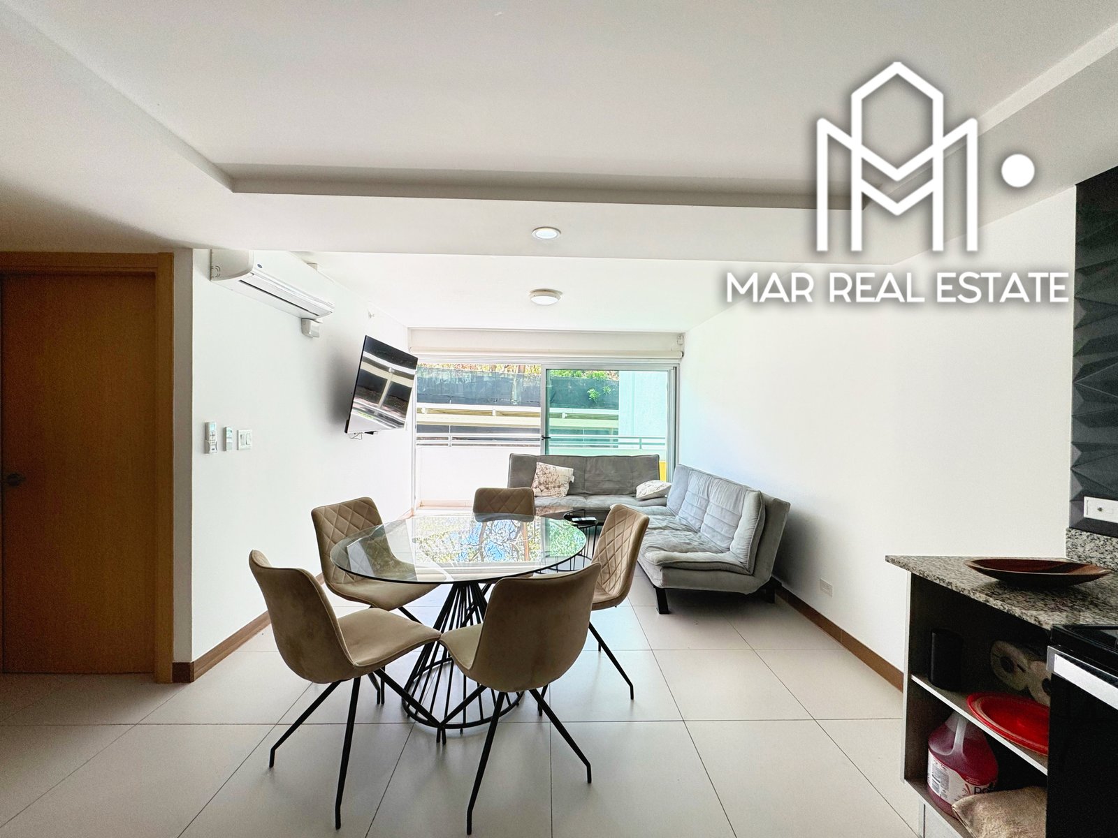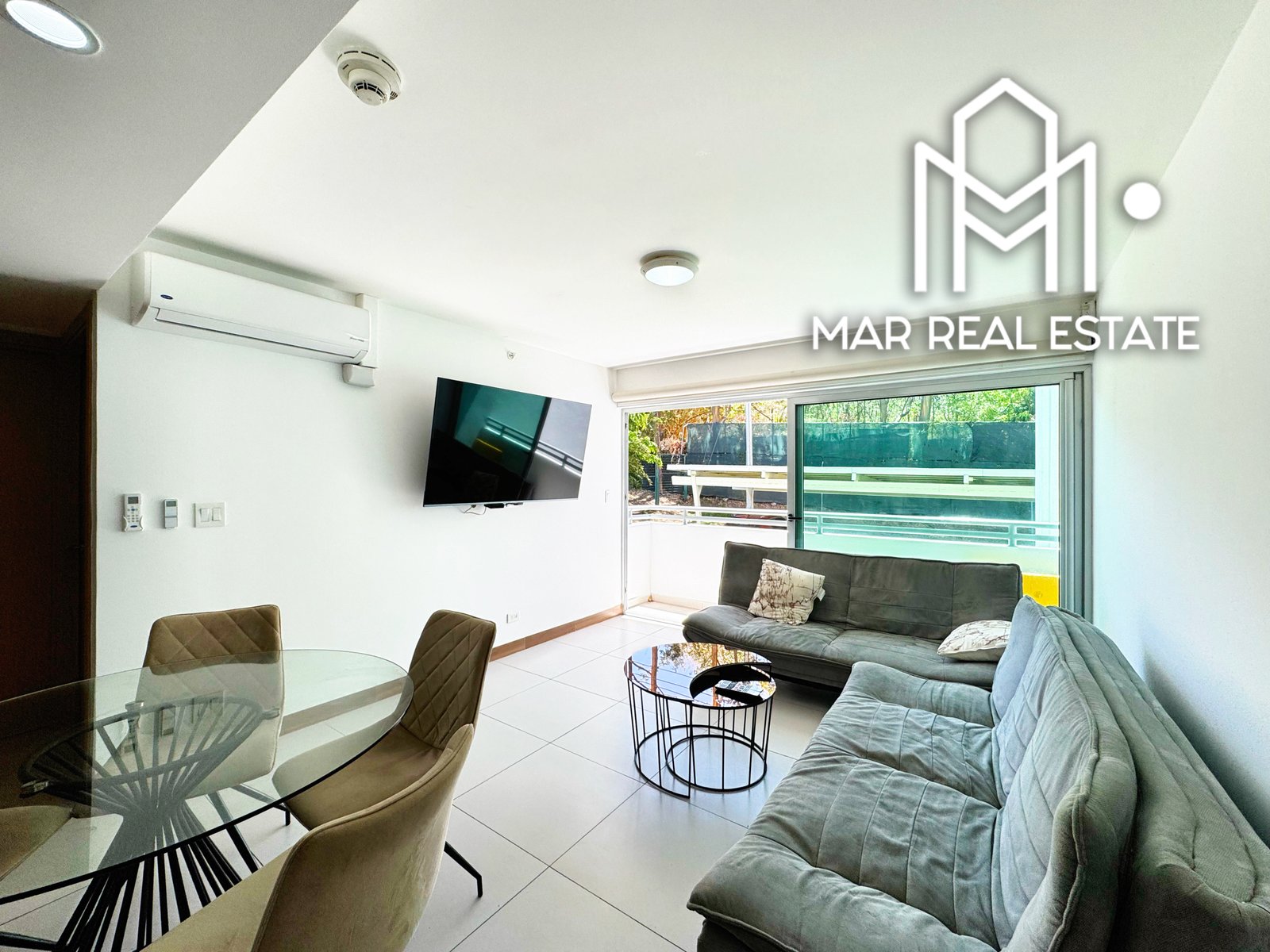 • Sala: Un espacio acogedor con muebles modernos, TV, aire acondicionado.