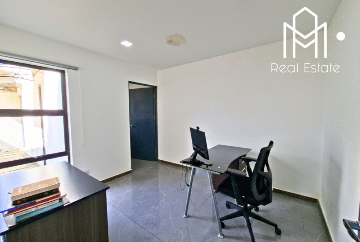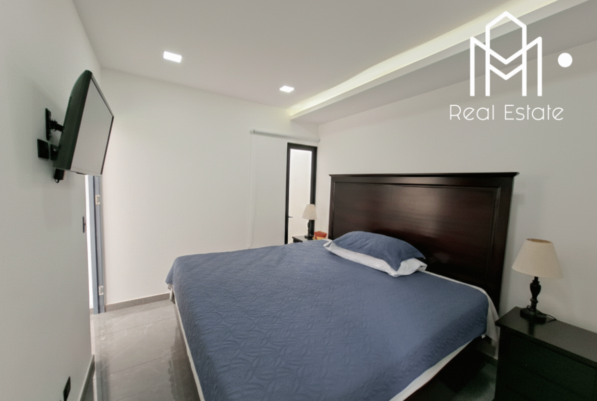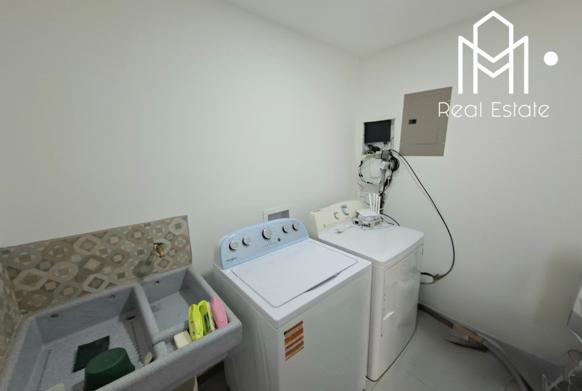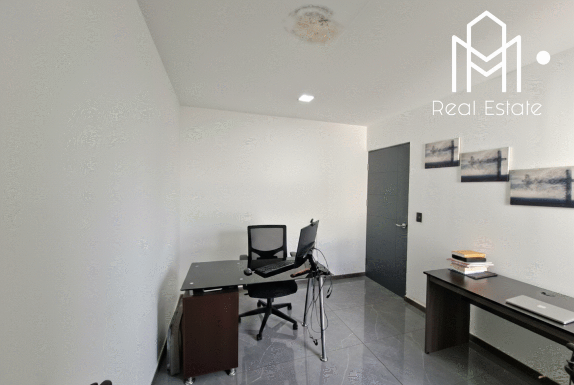 La casa ofrece tres habitaciones, incluyendo una principal con walk-in closet, además de dos baños completos equipados con muebles en melamina hidrófuga y sobres de cuarzo. El área social integra sala y comedor en un ambiente amplio y acogedor, complementado por una cocina espaciosa con muebles en melamina hidrófuga y sobres de cuarzo. Uno de los cuartos actualmente esta adaptada como oficina, ideal para teletrabajo, una terraza para disfrutar al aire libre y una lavandería externa que optimiza el uso del espacio.