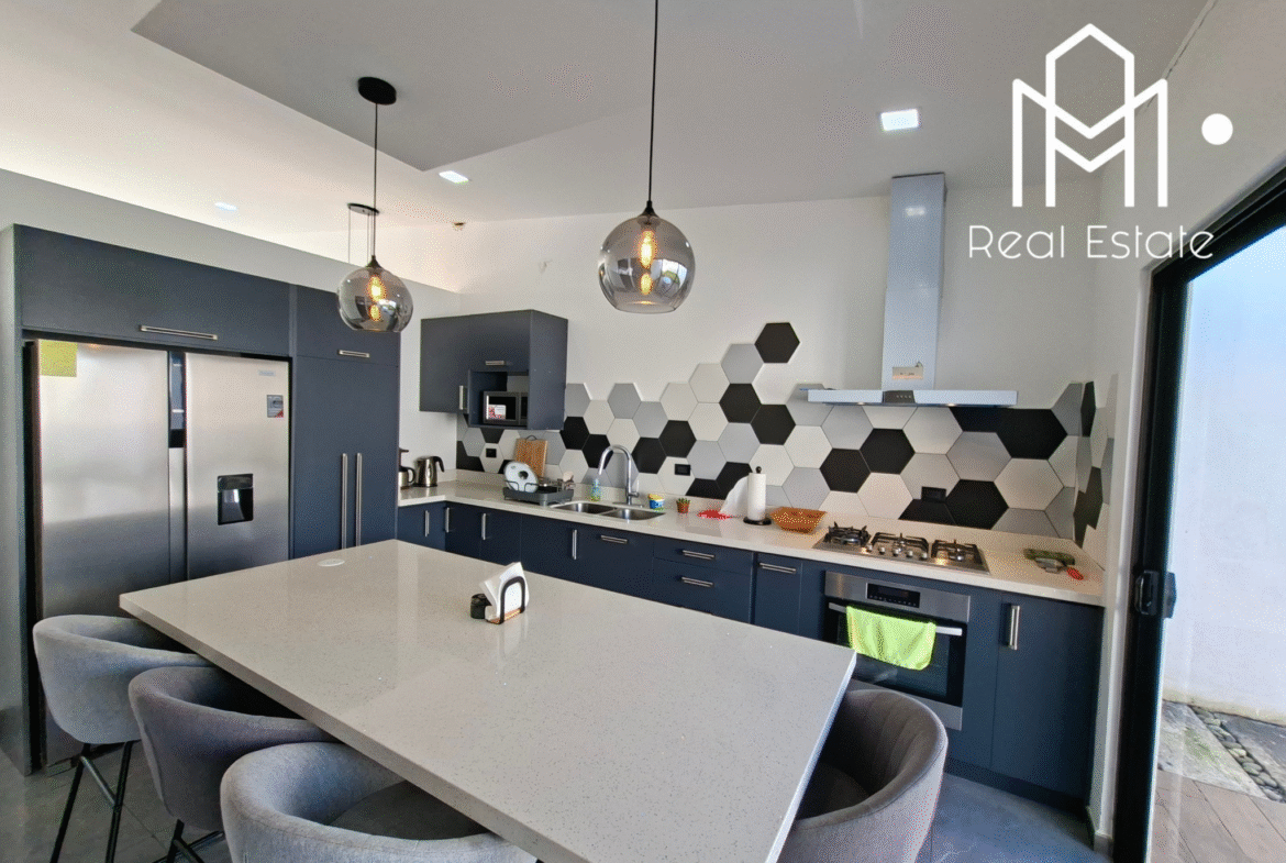 La propiedad cuenta con un lote de 240 m² y una construcción de 162 m², completamente edificada en block, lo que garantiza solidez y durabilidad. Sus finos y modernos acabados, junto con materiales de alta calidad, aportan elegancia y funcionalidad a cada ambiente.