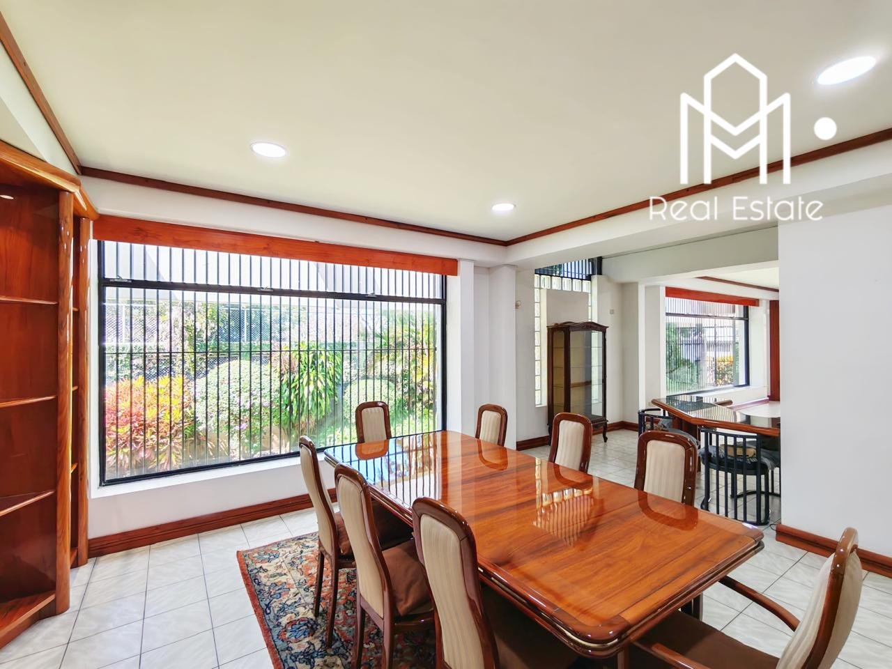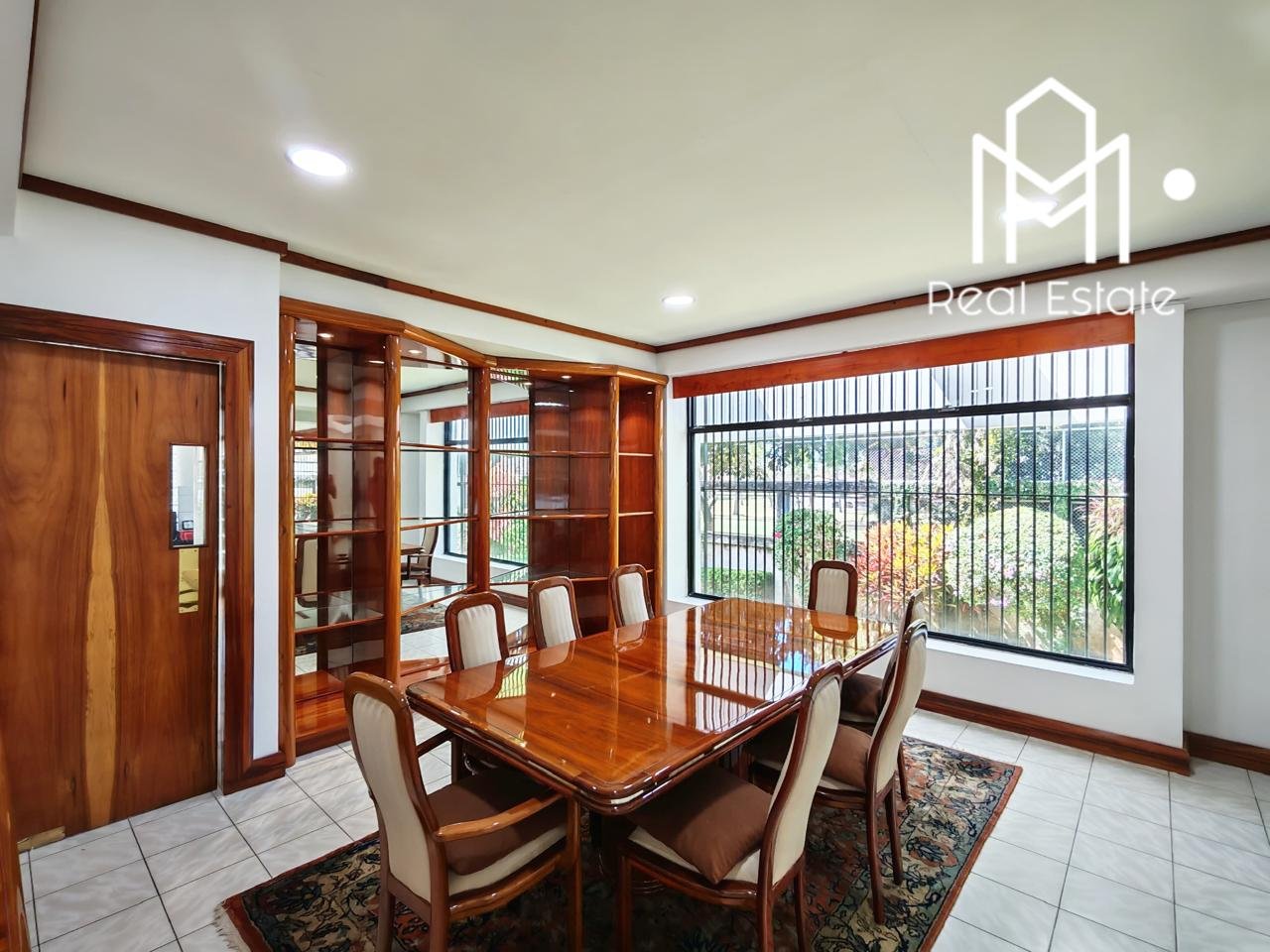 Mobiliario Incluido: Se entrega con juego de comedor, bar y muebles de madera Cristóbal con acabado en poliuretano pulido de lujo. 🪵