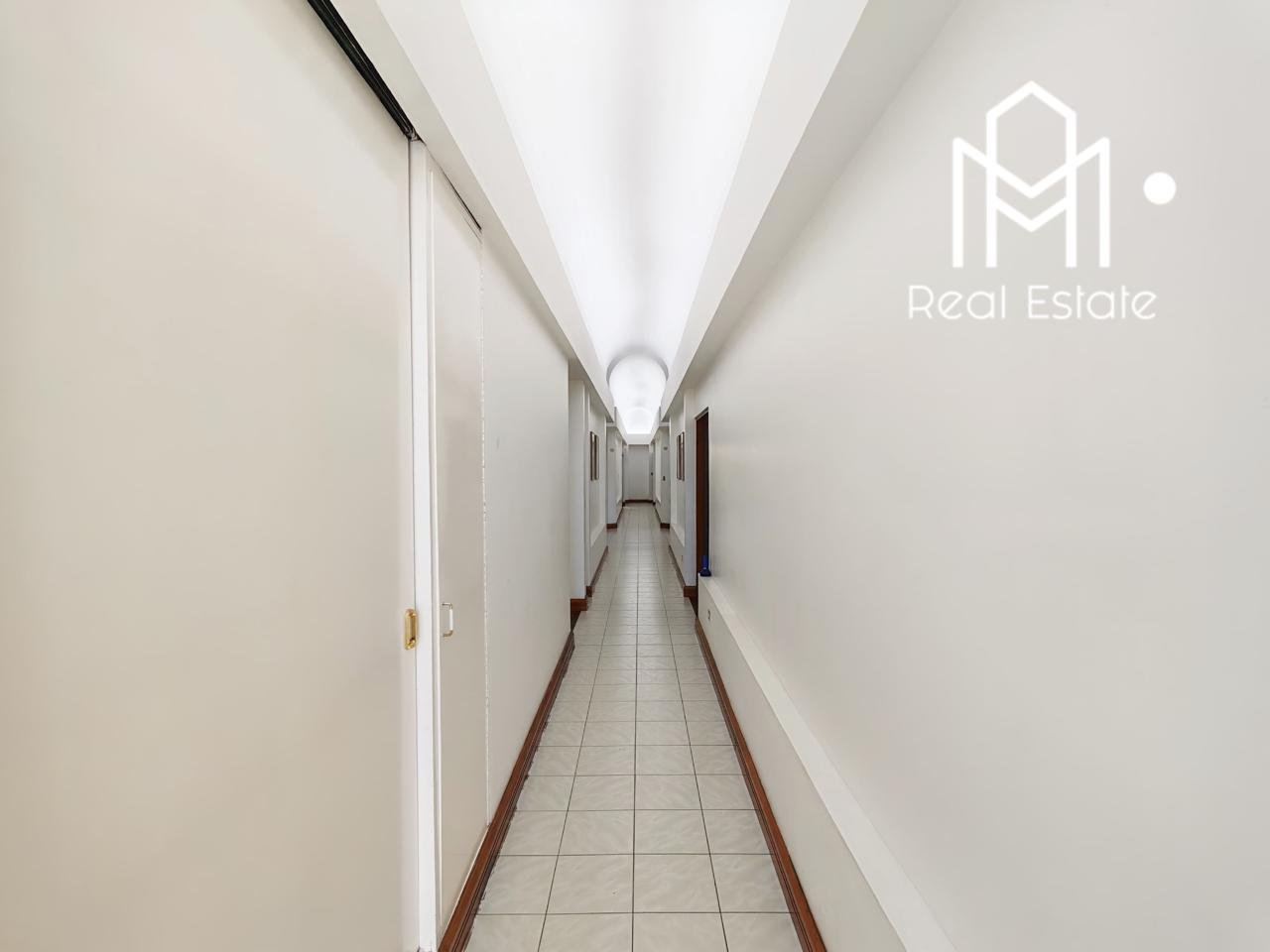 Arquitectura de Luz: Un espectacular pasillo central de 30 metros conecta toda la casa, resaltando los cielos altos y la iluminación natural.