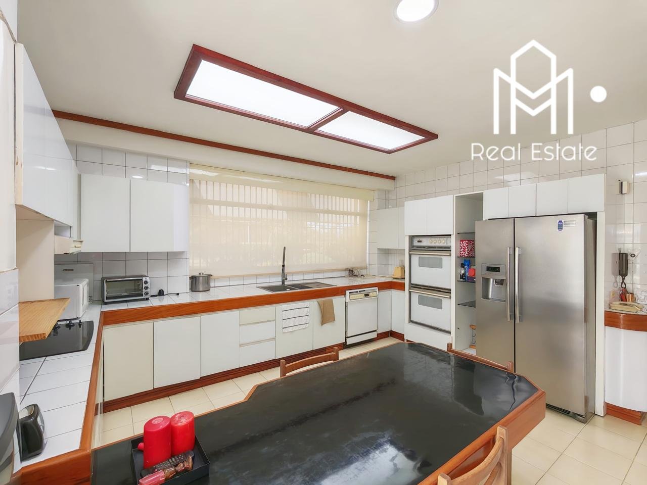Áreas Sociales: Sala, comedor y bar integrados, con persianas automáticas y acabados en madera Cristóbal. 🥂
